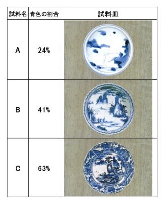 (図1 使用した皿の青色の割合と分類)