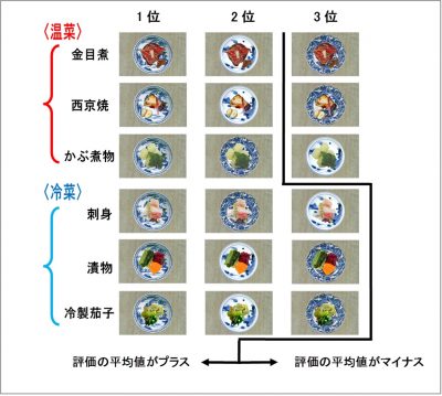その結果、多くの料理で白磁の評価が最も高かったものの、青磁や瑠璃釉でも食欲の増進が見られることがわかりました。