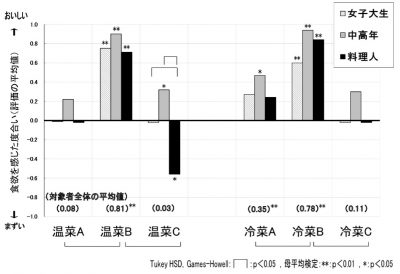 (図3 温菜、冷菜の種別が皿と食欲の関係に与える影響(対象群別))