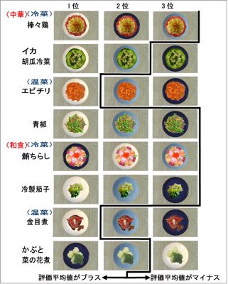 (図2 評価の順位と食欲の増減の境界(和食の温菜・冷菜))