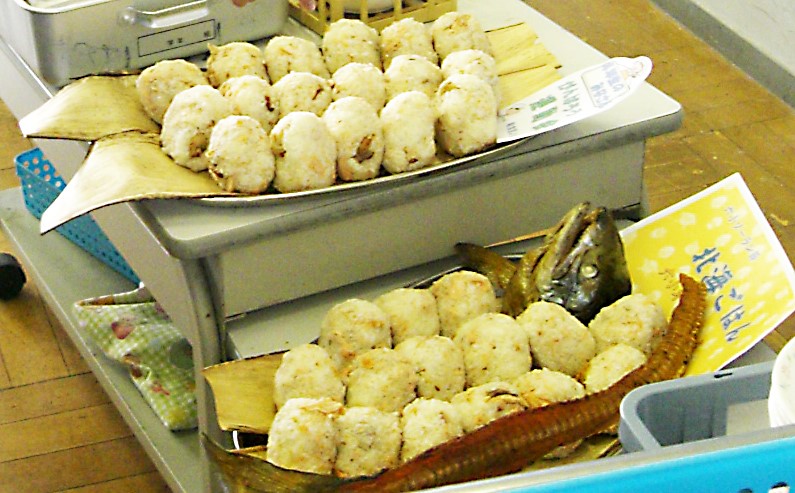 一方、3・4年生は表現で「ソーラン節」を演じます。ソーラン節といえば北海道、ある年の特別メニューは鮭を前面に出したおにぎりの「北海ごはん」。ある年では、ソーラン節…海…魚…ニシン…、デザート系も子どもたちは喜ぶので焼き魚以外でも表現したい…。